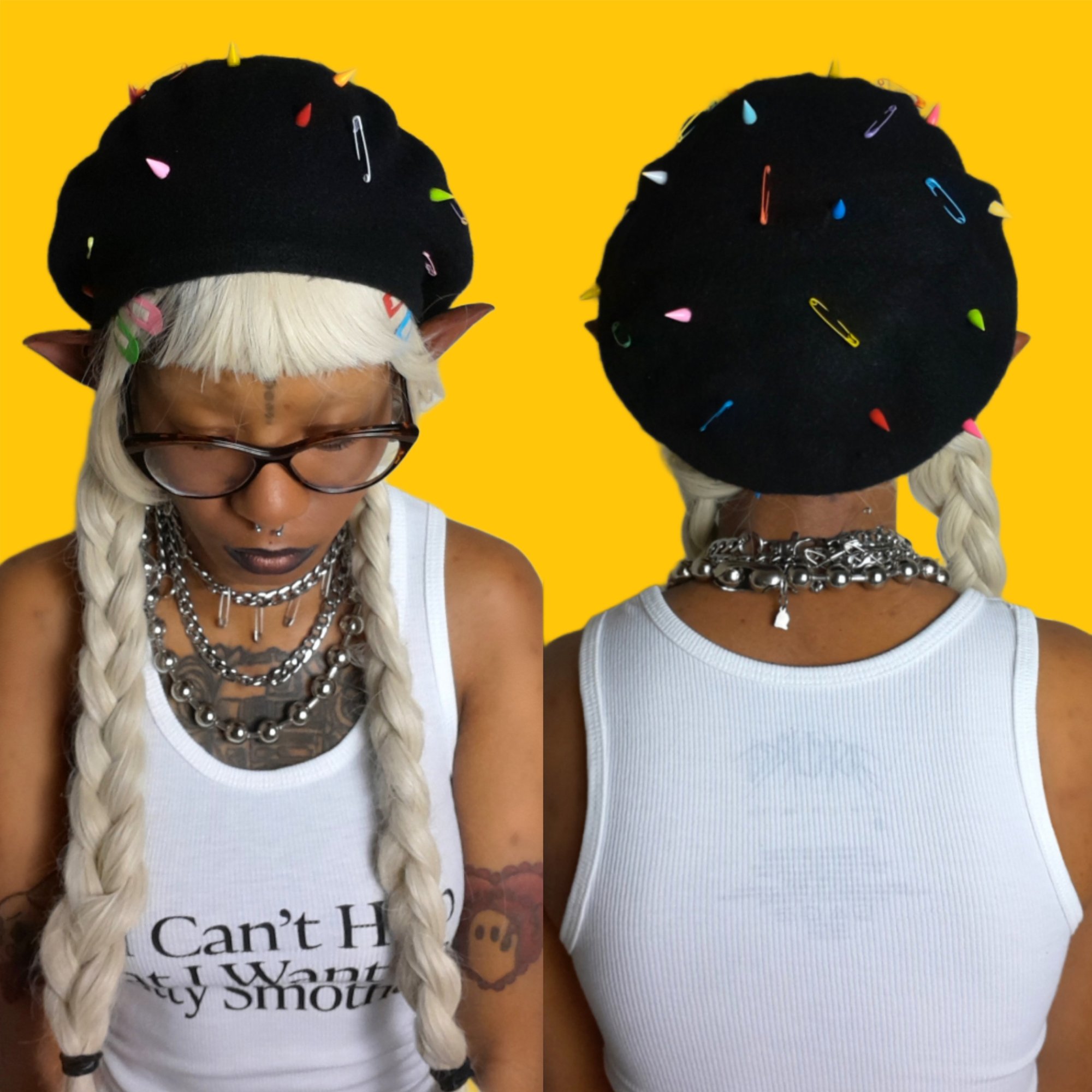 - 7x14mm sturdy spikes (zinc alloy) on colored beret